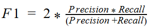 If we substitute the values we calculated for Precision and Recall F1 score will be 0.84 or 84%.