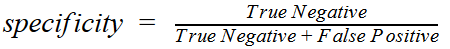 It says how many negative is correctly predicted.Highly Specificity means all False are correctly predicted.