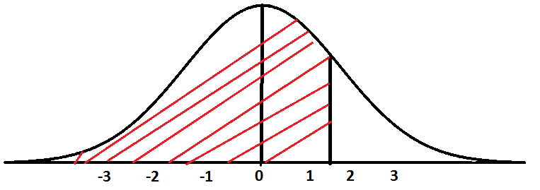 To find the answer using the Z-table(see the Fig 1:), find where the row for 1.5 intersects with the column for 0.00; this value is 0.9332.