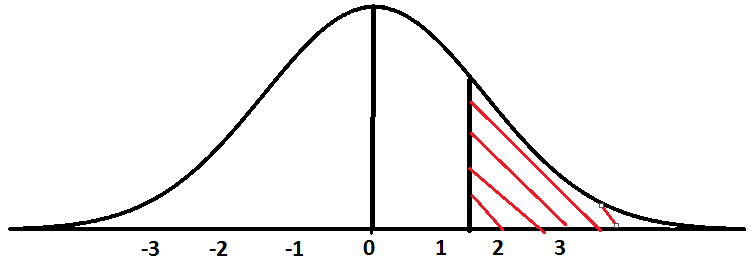 P(z>1.5) = 1 – P(z<1.5) = 1-0.9332=0.0668 (We already calculated P(z<1.5))