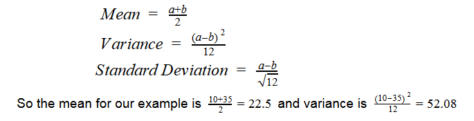 1)Let’s find out mean and variance for one of our question x~ uniform(10,35).