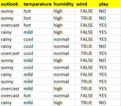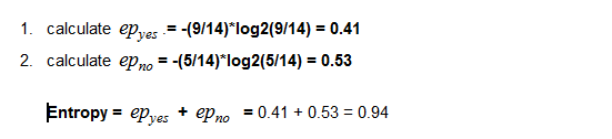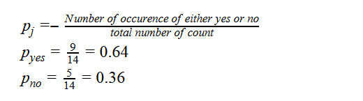 In our below dataset we have two classes YES and NO and we have 9 YES and 5 NO out of 14 observations.